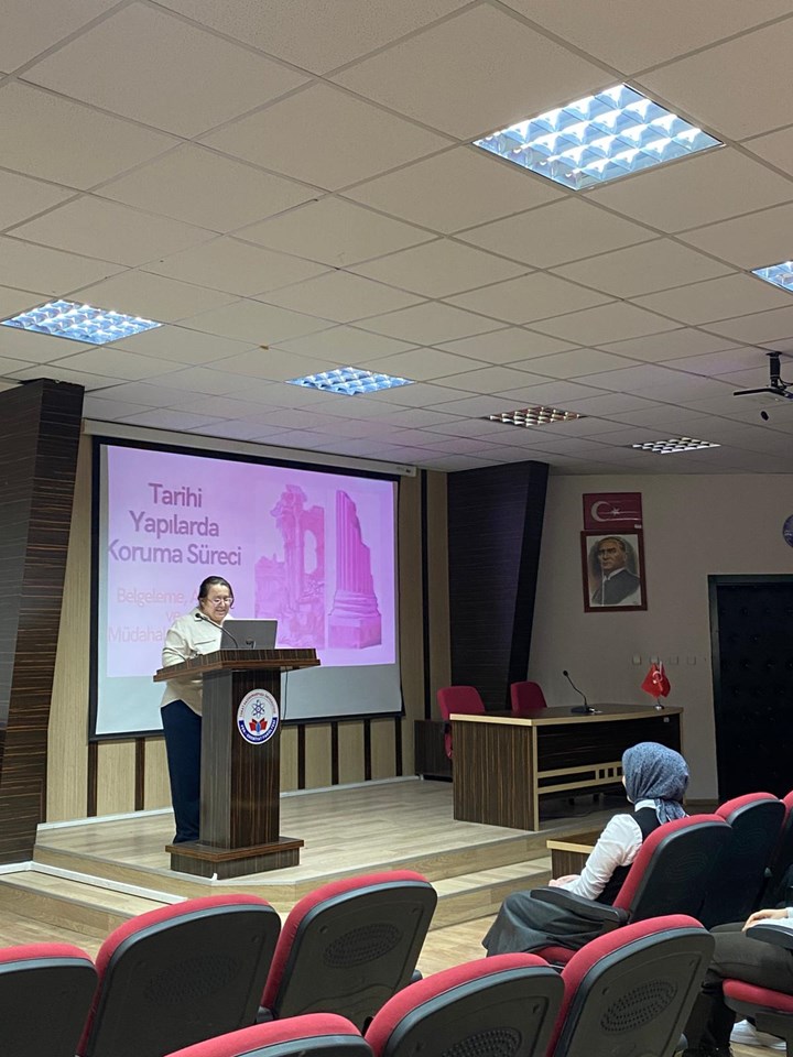 Etkinliğe konuşmacı olarak davet edilen Tokat Meslek Yüksekokulu İnşaat Teknolojisi Programı öğretim elemanı Öğr. Gör. Merve ÖZCAN ATALAY, tarihi yapıların korunmasında kritik öneme sahip teknik aşamaları paylaştı. Atalay kapsamlı sunumunda şu ana başlıklara odaklandı: